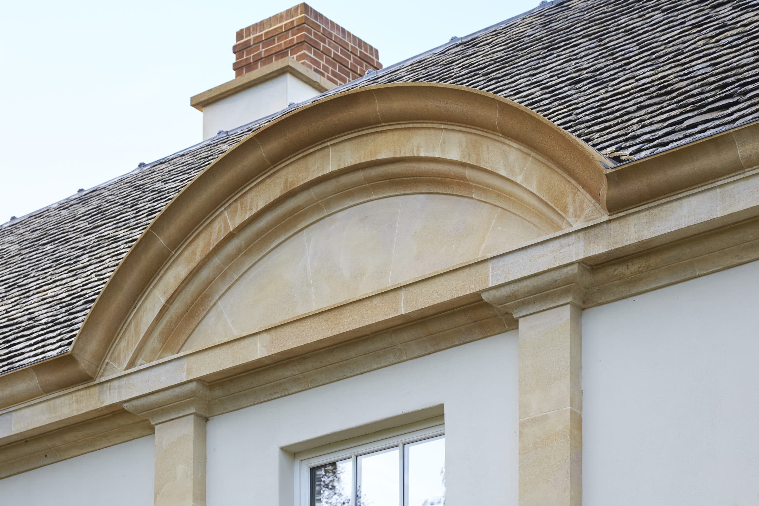 Brinscall pitched walling and dressed stooled cills, thresholds and entry points provide a textured base that contrasts with the smoother Bath stone ashlar above, enriching the elevations without overcomplicating them.