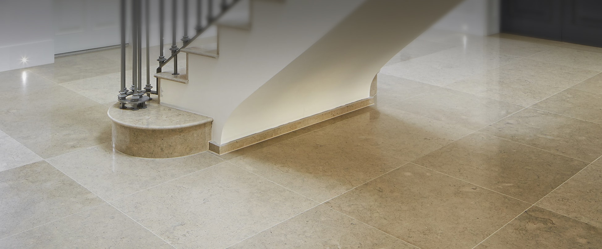 The Bath stone and Brinscall plinth do not stop at the threshold; they extend into the entrance hall, reinforcing the connection between inside and out.