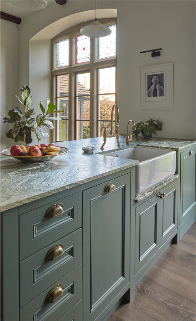 This Verde Cipollino kitchen embodies our passion for the organic drama of natural stone.