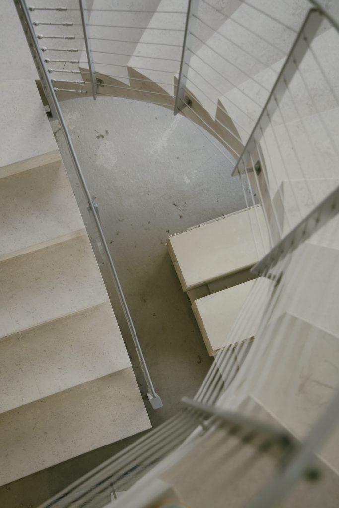 The result is a free-standing stair in solid stone that appears to float, combining architectural ambition with a structural system that is both proven and precisely controlled.